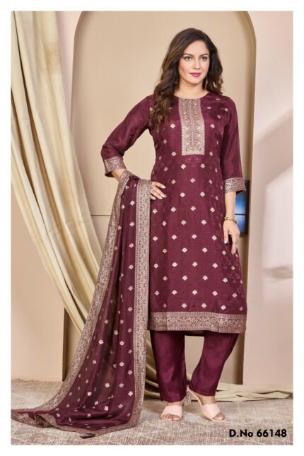 Plum Purple Embroidered Salwar Suit with Banarasi Dupatta