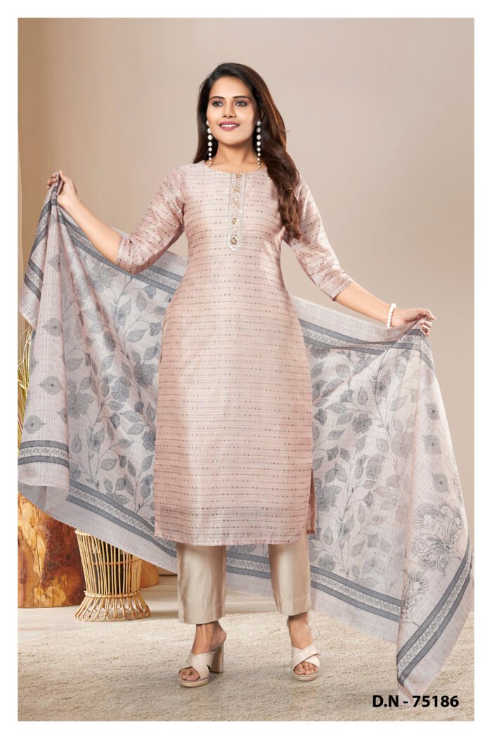 Be the first to review “Blush Pink & Grey Printed Cotton Blend Straight Suit Set with Dupatta”