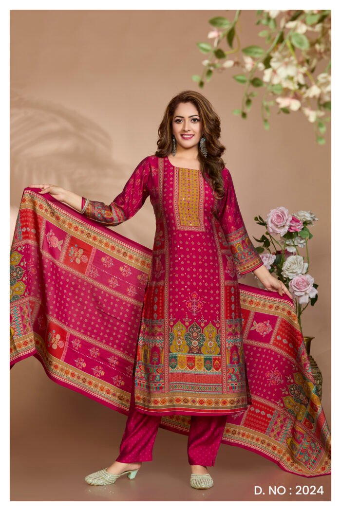 • Shirt (Kameez): High-quality lawn fabric with all-over digital print in deep pink base and intricate multicolored traditional motifs