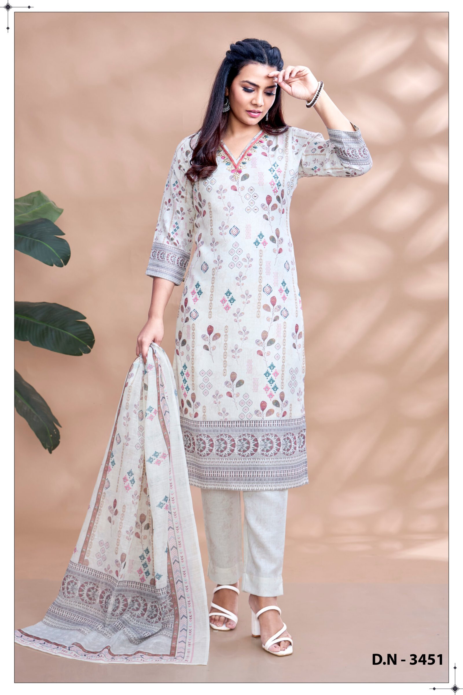 Chic and breathable off-white printed kurta set with straight pants and a matching dupatta. Ideal for summer casuals and day-to-day ethnic wear.