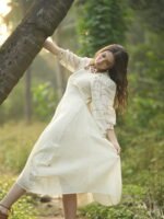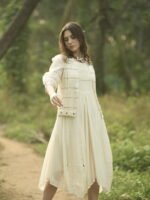 Be the first to review “Ivory Pleated Cotton Midi Dress with Embroidered Shrug”