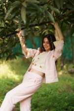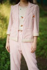 Be the first to review “Peach Striped Blazer Co-Ord Set with Embroidered Crochet Top”