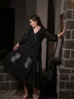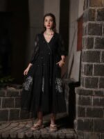 Be the first to review “Black Sheer Sleeve Embroidered Midi Dress with Floral Detailing”