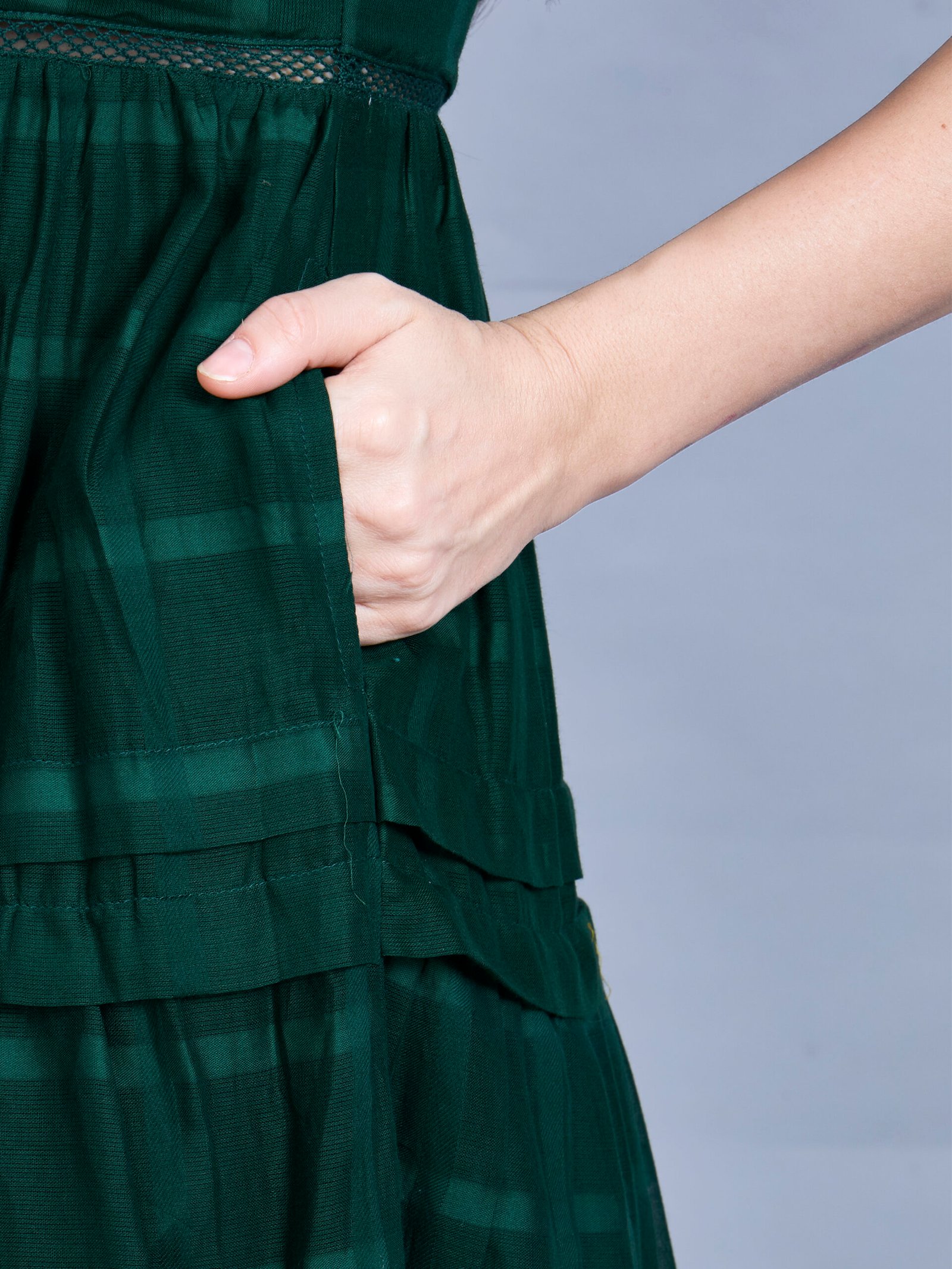 Premium Emerald Green Tiered Midi Dress with Tie-Strap Shoulders