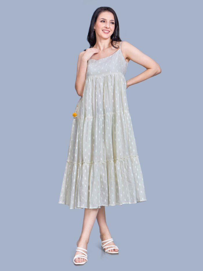 Be the first to review “Premium Soft Sage Polka Dot Tiered Pure Mall Cotton One Piece”